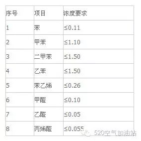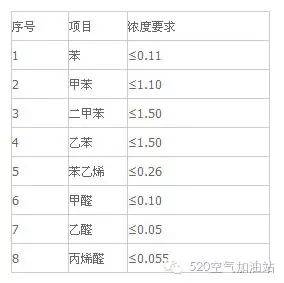 本标准规定了车内空气中苯、甲苯、二甲苯、乙苯、苯乙烯、甲醛、乙醛、丙烯醛的浓度要求。